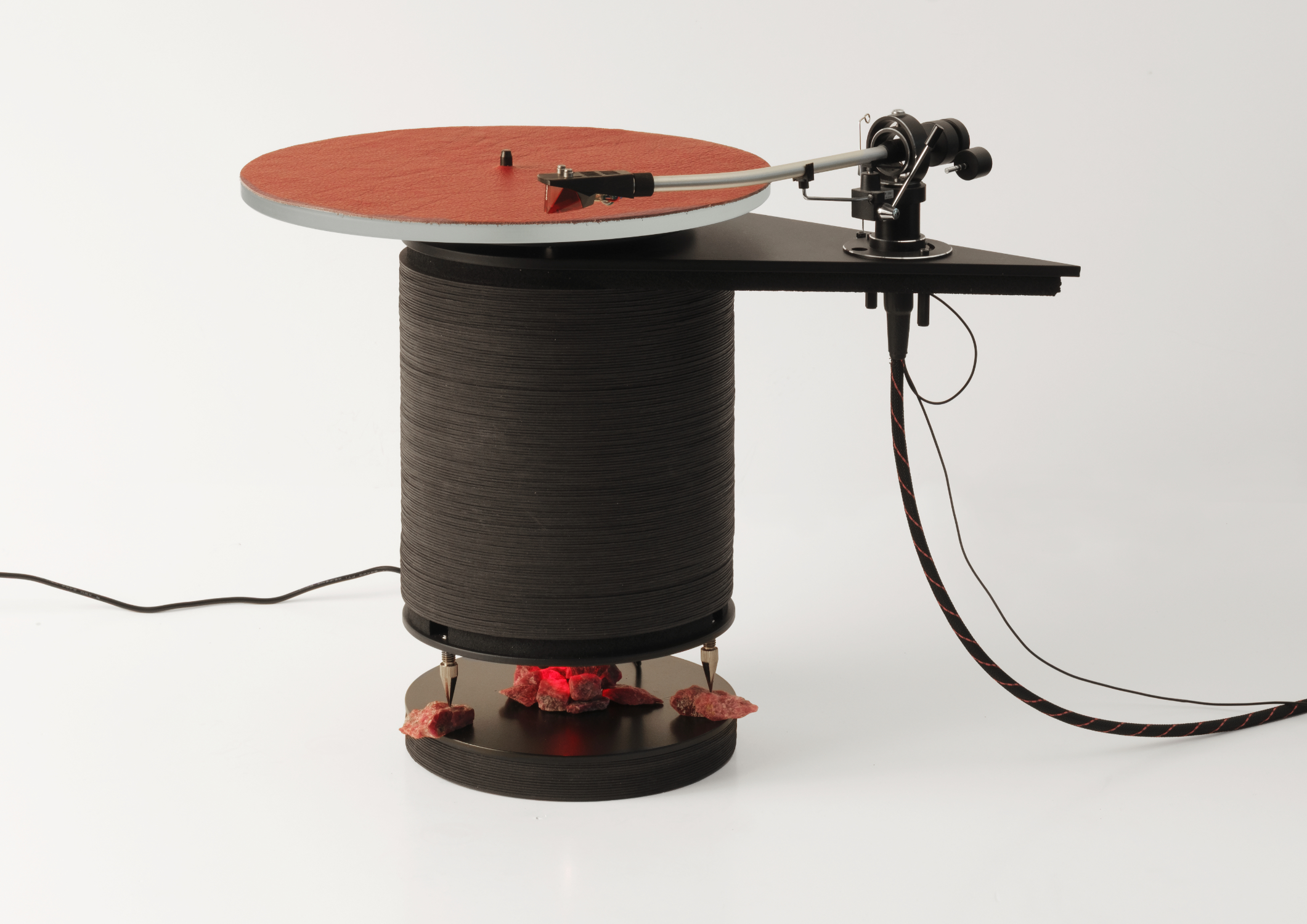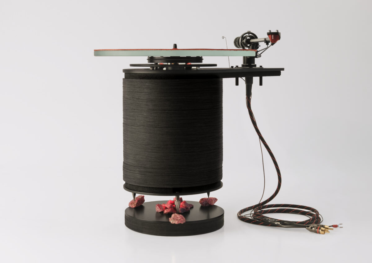 Gramofon G2 má základní tvar válce z vrstveného papíru. konzolová konstrukce plechu A, odpruženého a tlumeného aglomerovanou gumou nese gramofonové raménko P1101 s přenoskou Ortofon 2M Red. Talíř a pohon Rega P2. Osvětlení subtalíře a prostoru rektifikačních jehel s polodrahokamy červenými LED. Antivibrační sokl ISO PUCK mini v pouzdře z vrstveného papíru. Rektifikační jehly jsou usazeny na surových polodrahokamech Rodonit. Tento gramofon je prvním prototypem svého druhu a byl sestrojen v letech 2022 až 2024.