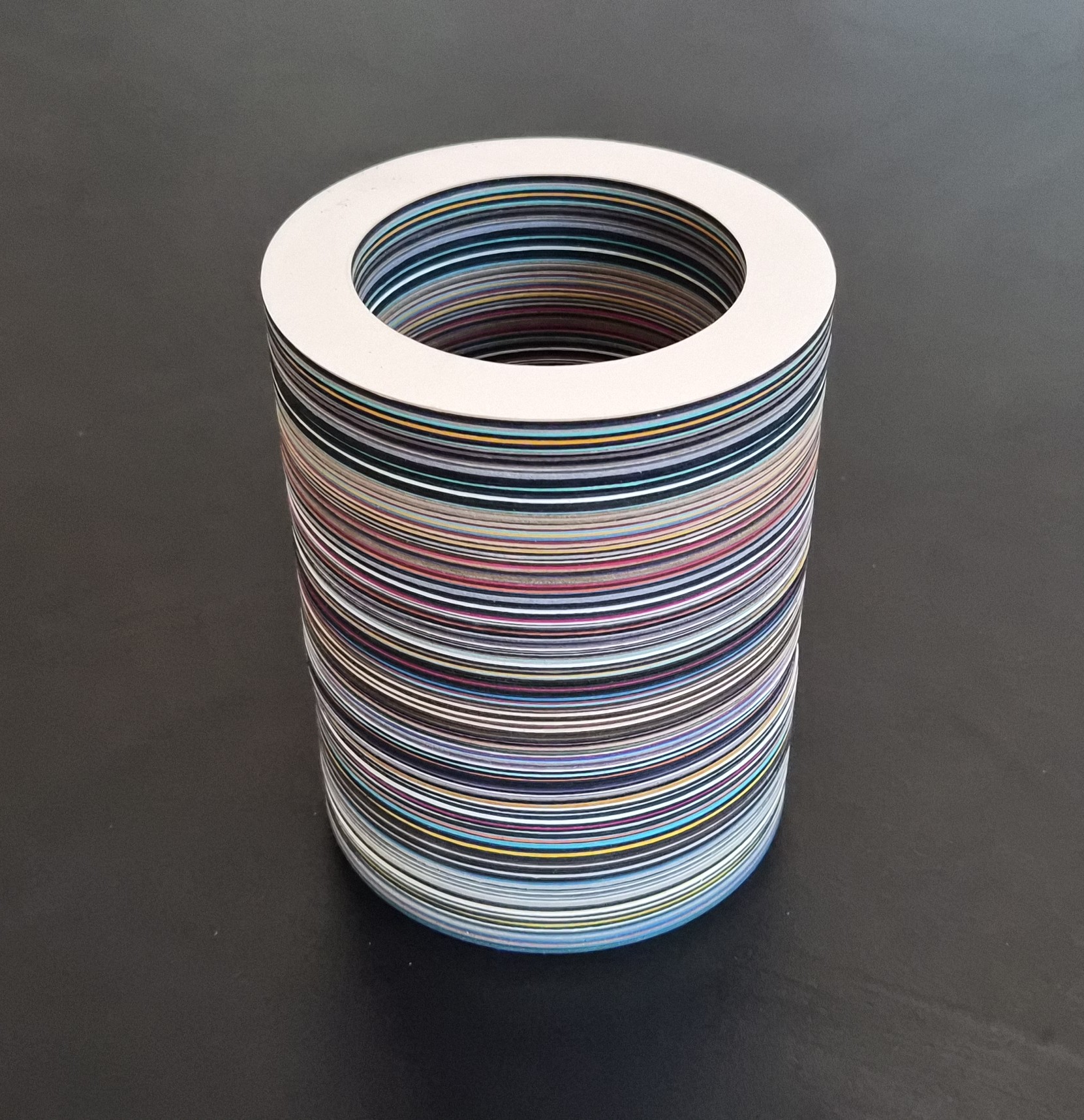 Válcová etuje na příslušenství gramofonu. Doplněk zejména k modelům z vrstveného černého papíru. V případě zájmu, je možné objednat v různých barvách, nebo kombinaci barev a v různých rozměrech, například dle velikosti a množství příslušenství.